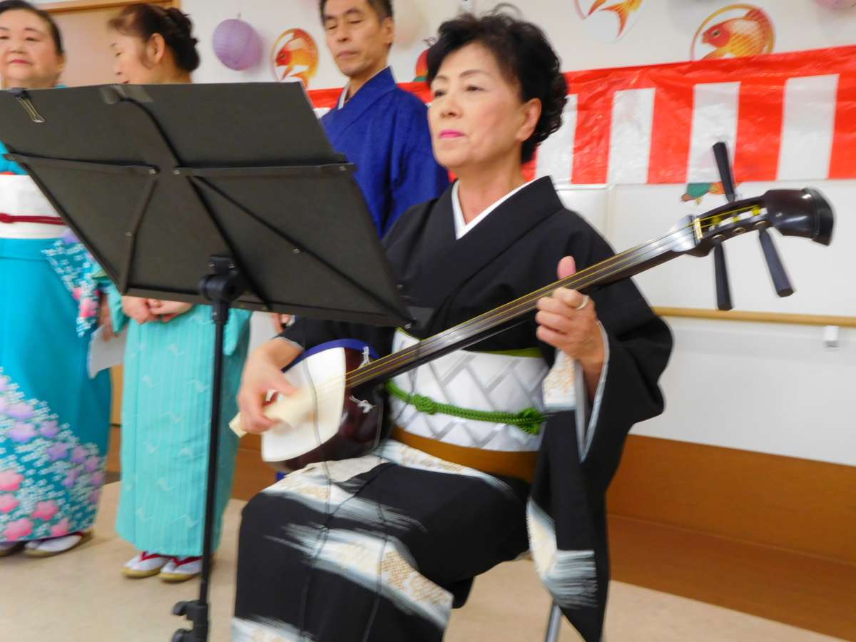 三味線演奏では、一緒に民謡を歌いました。
