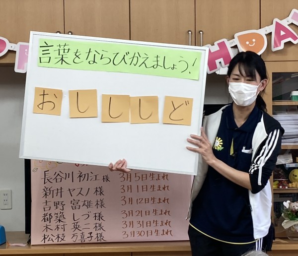 今月は 【朧月夜】【幸せなら手をたたこう】の2曲を皆さんと一緒に歌いました。