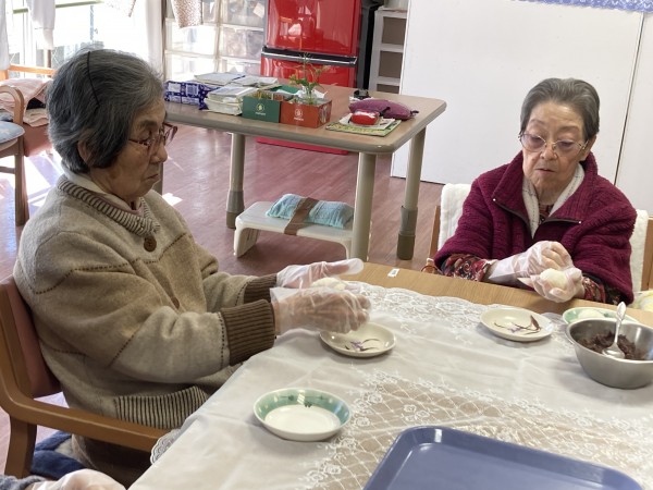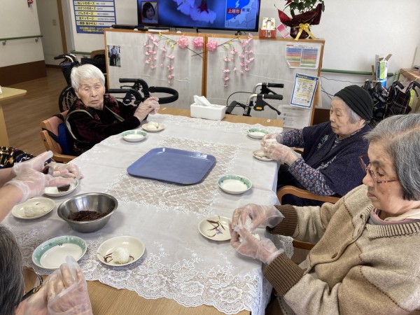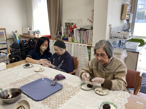 皆さんと一緒に「ぼた餅」づくりをしました。