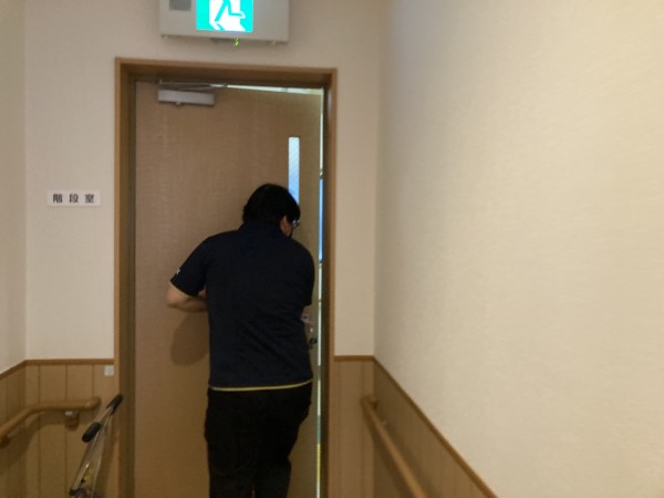 本来なら、非常階段を使用して施設の入り口までの誘導を行いたかったのですが・・・