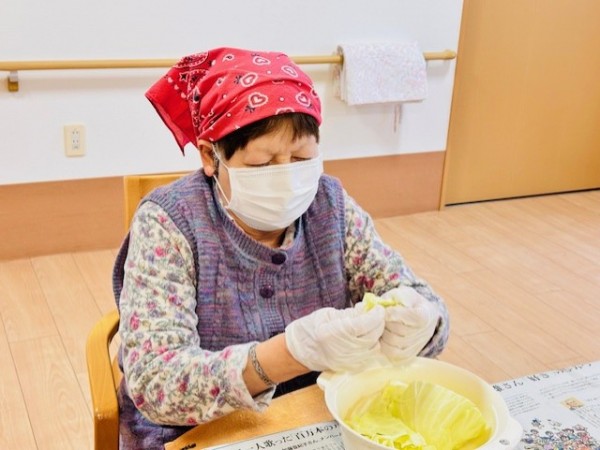 今回は包丁で切る材料が少なかったので、キャベツを剥いたりモヤシを半分にしてもらう工程を増やしました