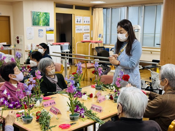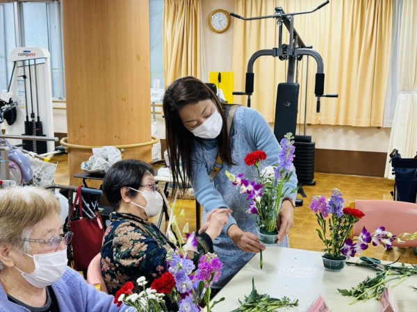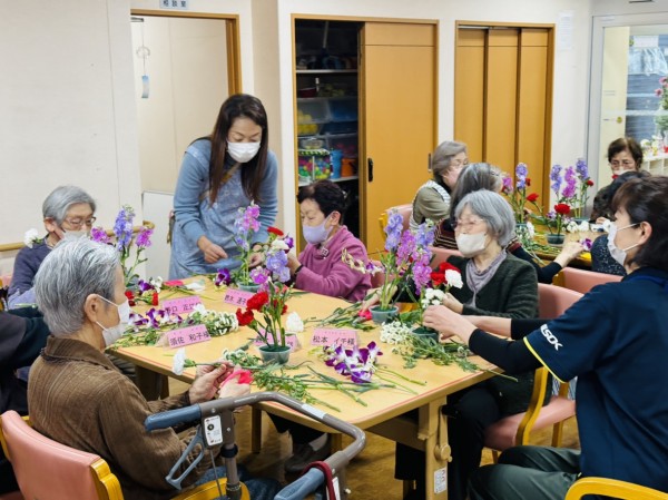 遊・東浦和では毎月恒例、生花を使ったフラワーアレンジメント教室がありました。