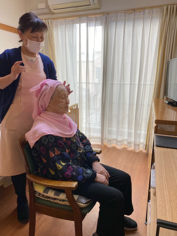 シニアセラピーの顔のマッサージの様子を写真にて、紹介します。