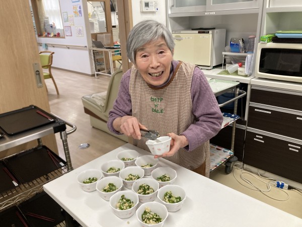 エプロンを付けて、夕飯の副菜を盛り付けをしてくださいました❀