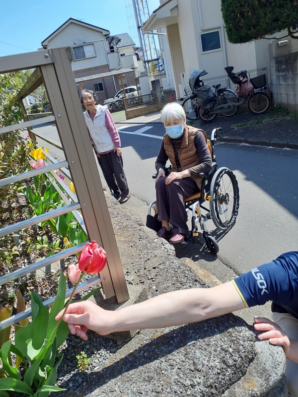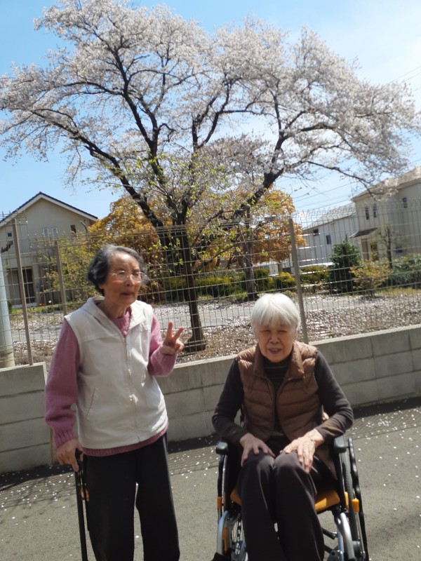本日はとっても天気が良く朝フロアでゆっくりしていた1階と2階のご利用者様とお散歩に行って来ました。