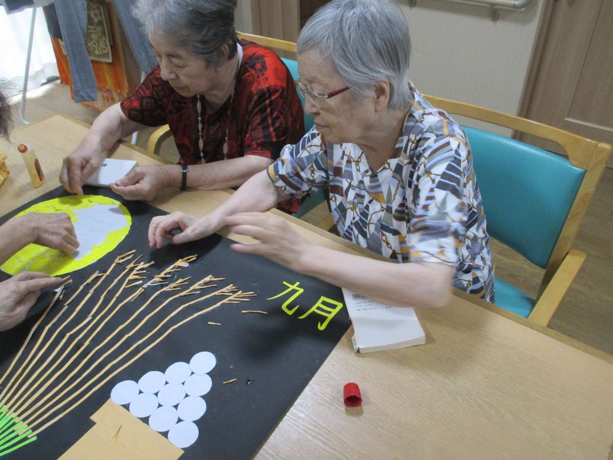 満月、すすき、月見団子、うさぎ・・・切り絵や貼り絵で表現しました!
