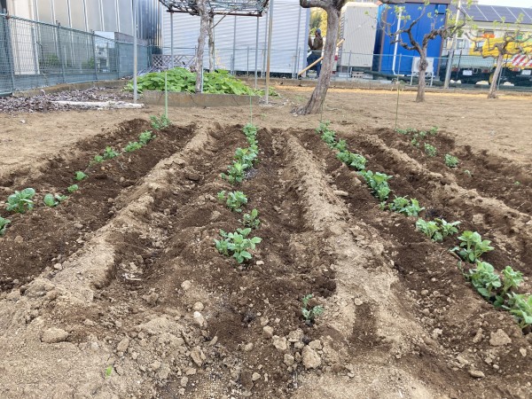 先日植えた畑に葉っぱが顔を出しているではありませんか(*'ω'*)