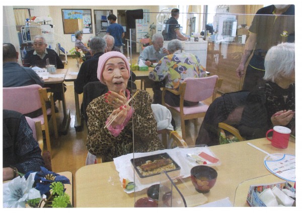 本日は【お弁当の日】Wasyoku大穀 狭山店さんのお弁当です。お弁当と言っても大穀のテイクアウトメニューより選ぶので鰻をはじめ様々なメニューをお選びいただけます。一番人気はやはり『うな重』お店の味がデイサービスでも楽しめるなんて素敵ですね。もちろん、以前のようにお店に行けたらもっといいのですが、まだ自粛中です。大穀さん、温かいお吸い物も届けてくださり漆のお椀でいただくことが出来ました。皆様も大満足のお弁当の日になりました。