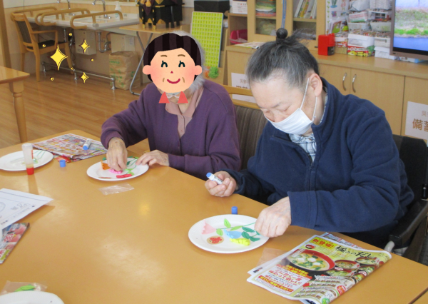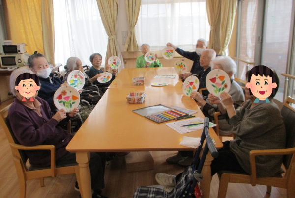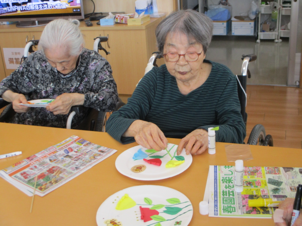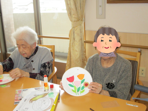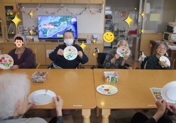 「お花さん今日は」春の絵皿 壁画レクリエーション☆」