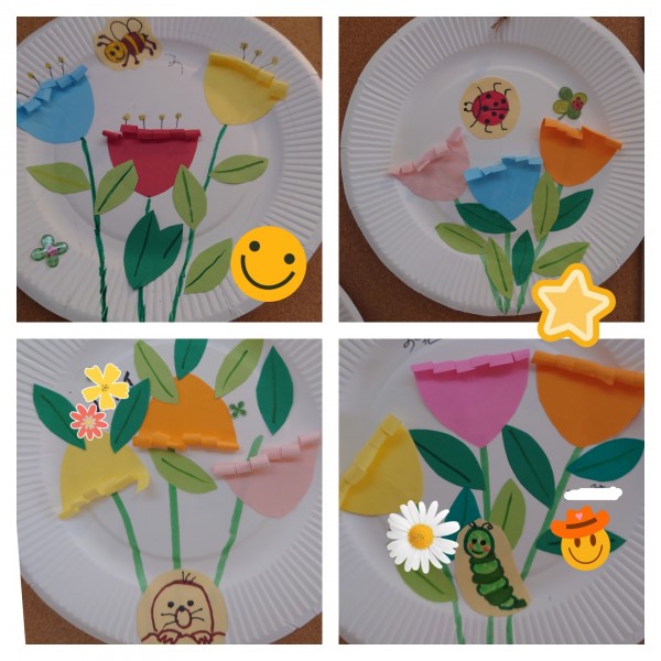 ☆4月@「お花さん今日は」春の絵皿 壁画レクリエーション☆