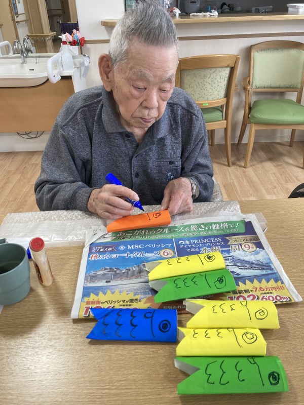 5月の飾りといえば鯉のぼり!皆さんで手作り鯉のぼりを作成中♪