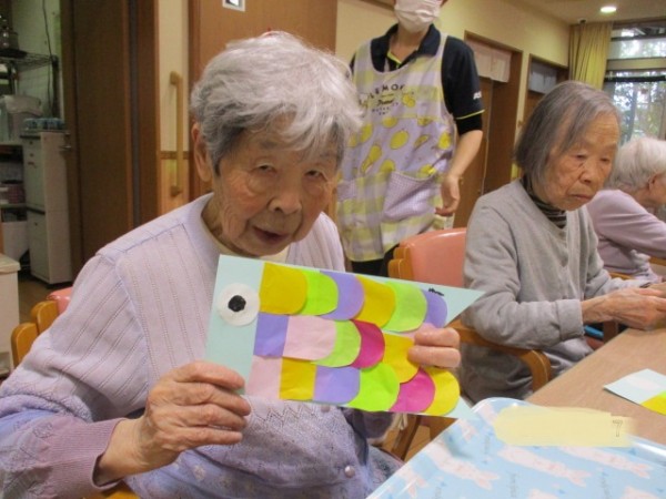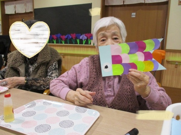 前置きは、さておき・・・みなさんと鯉のぼり作成されました。個性豊かな作品をご覧ください(^_-)-☆