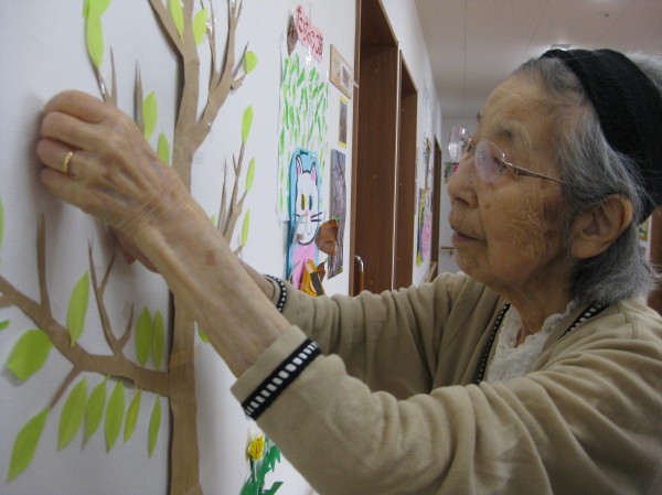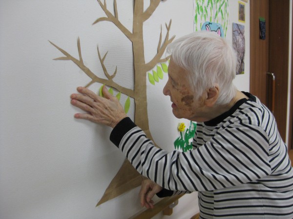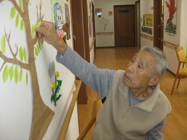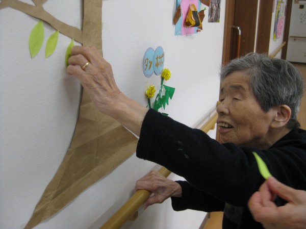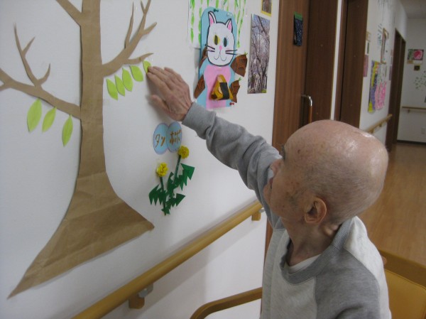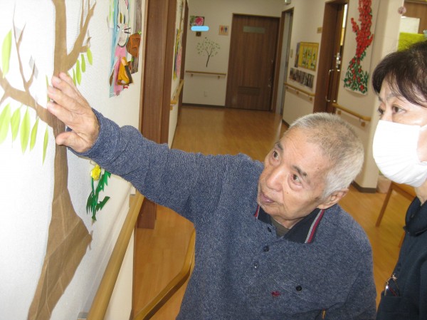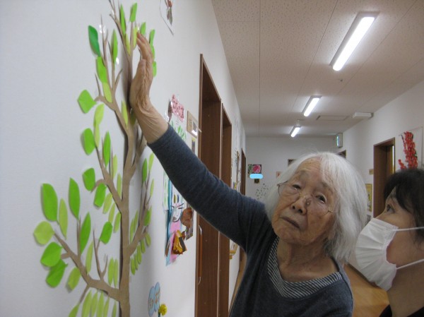 楽しそうに新緑の貼り絵、壁画を作成しました。良くできました(*^_^*) と嬉しそうにお話しされていました(*^_^*)