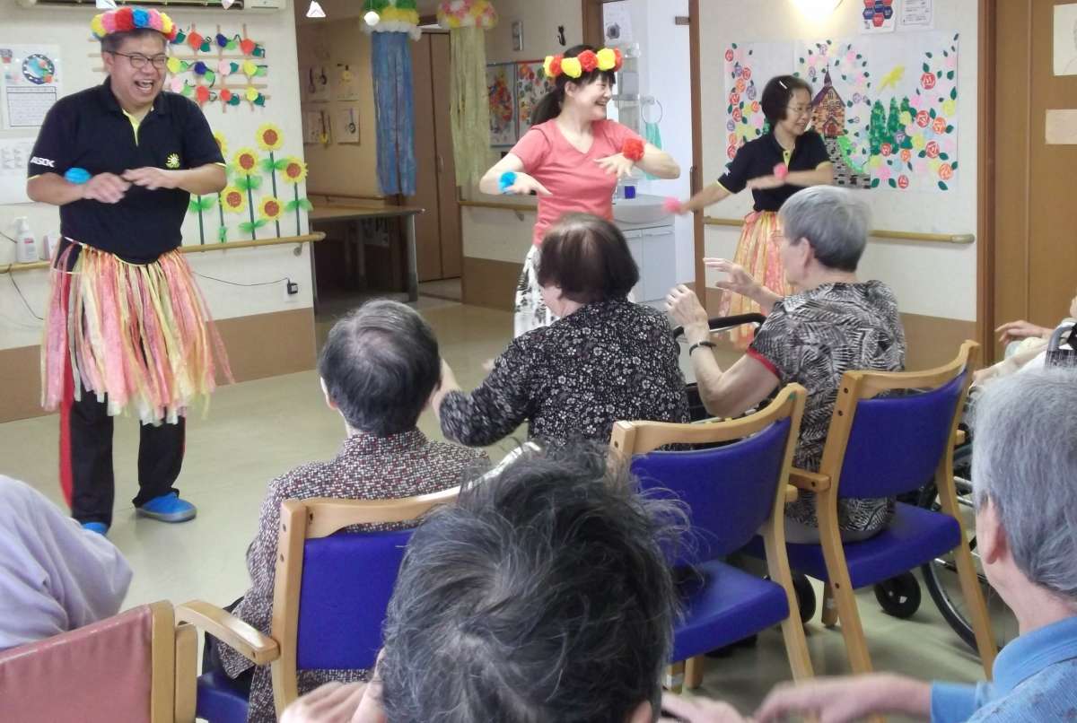 催し物として、職員はもちろん外部のボランティア団体方々にお招きいただき、日本舞踊・ソーラン節等披露して頂いてます