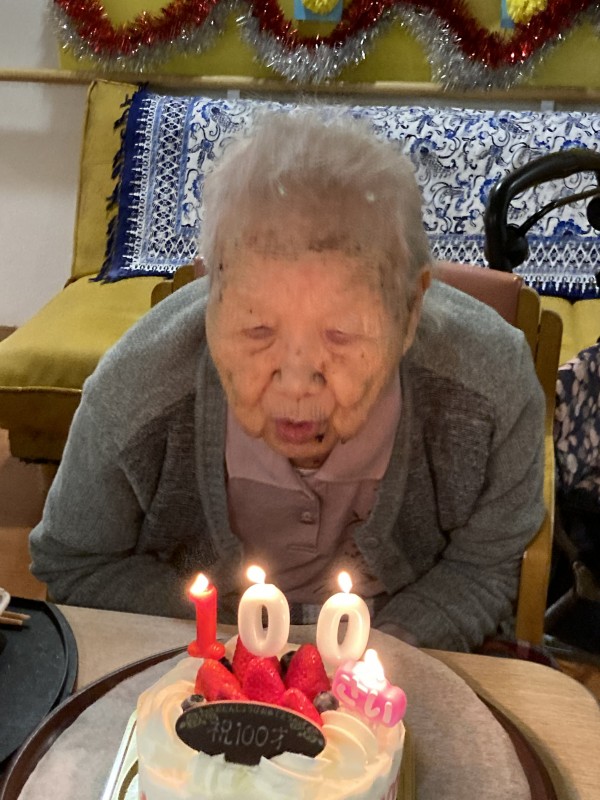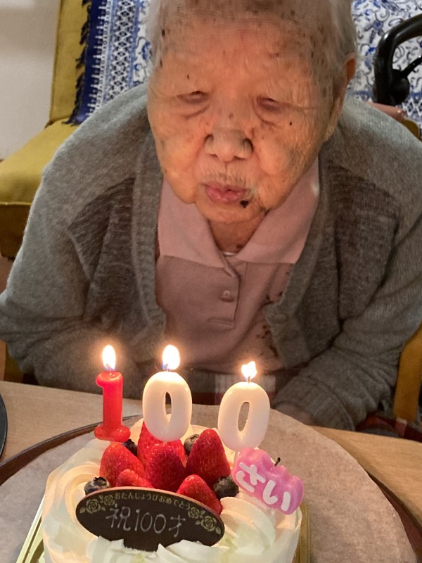 先日100歳を迎えられたSさんのお誕生日会の写真がとっても素敵だったので