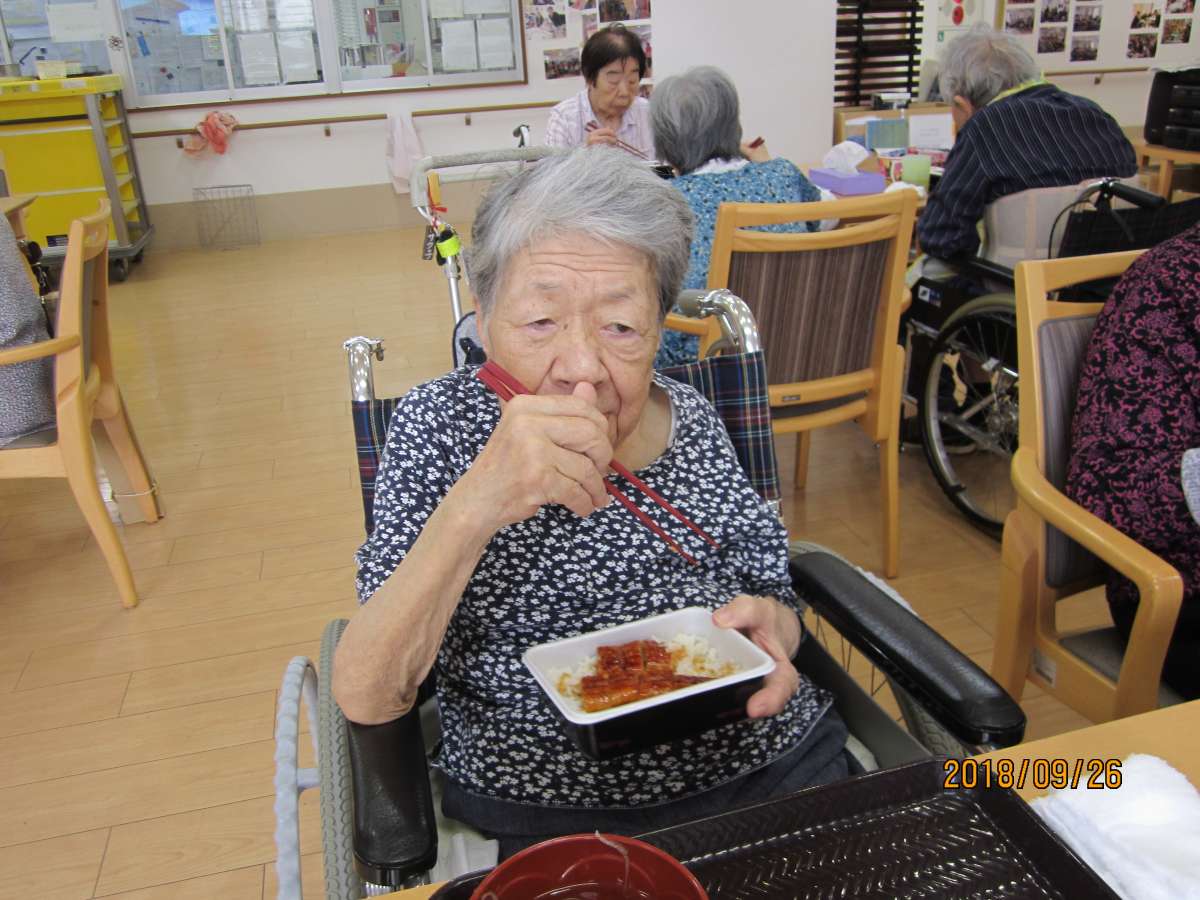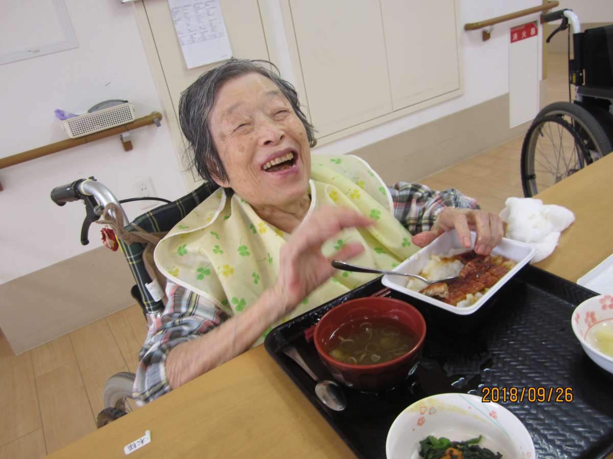 こんにちは!『介護付き有料老人ホーム みんなの家・三橋6丁目』です。敬老の日から過ぎること10日・・・遅くなりましたが、26日に『敬老会』を開催しました(^O^) 第一部は昼食 みんな大好き『う・な・ぎ♡』みなさん食べながら笑顔がこぼれてました(#^.^#)