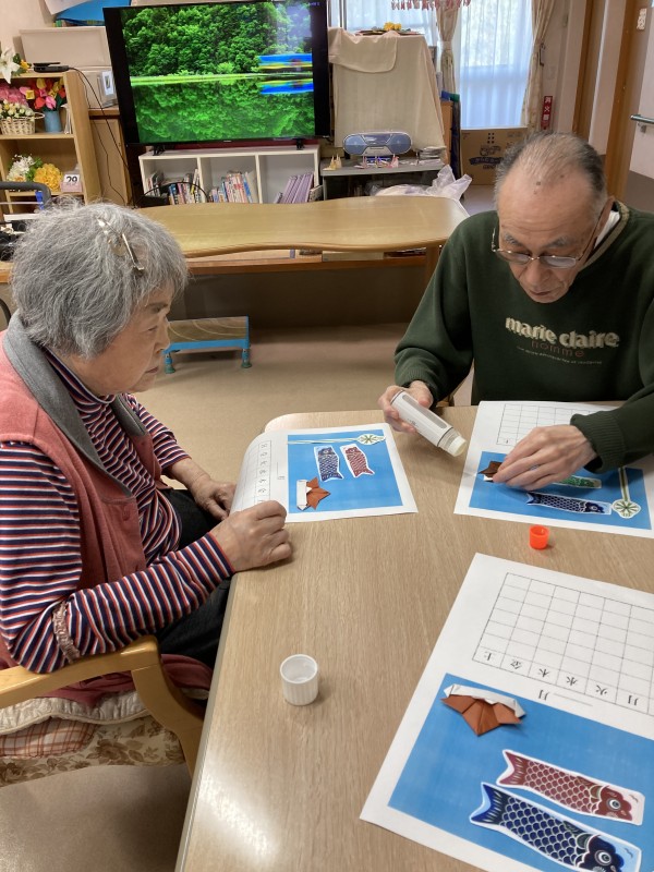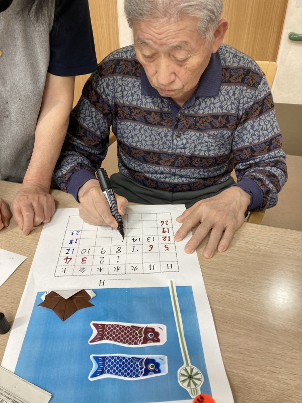 兜に鯉のぼりを皆様に貼り付けて頂き、日付を記入して頂きました。