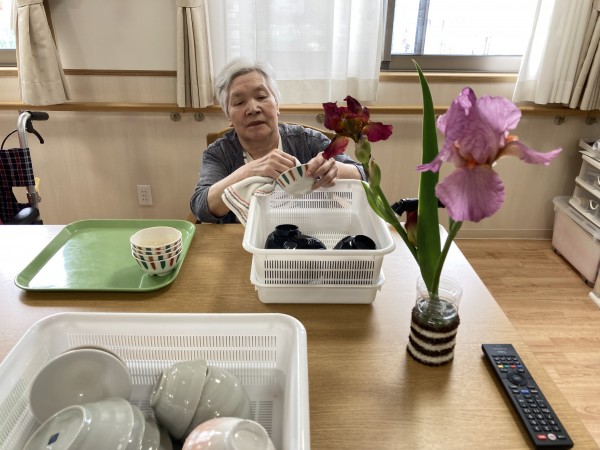お花を見ながらお手伝い♪