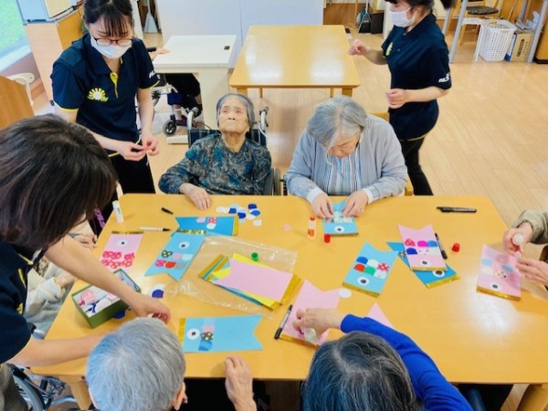 ブログ担当のママがご紹介するのは、1階フロアーで鯉のぼり制作をしているご様子です。