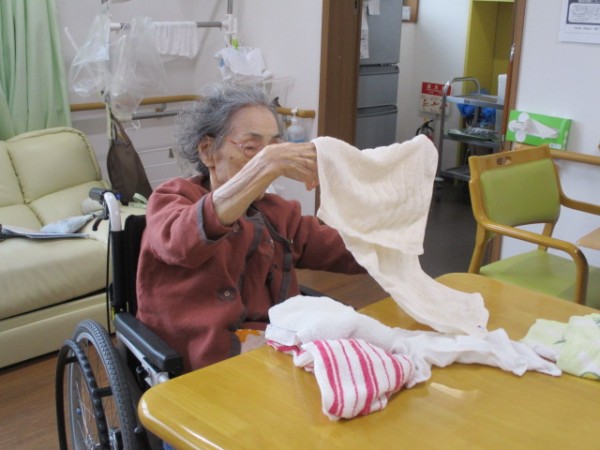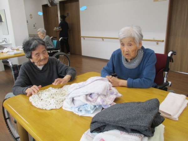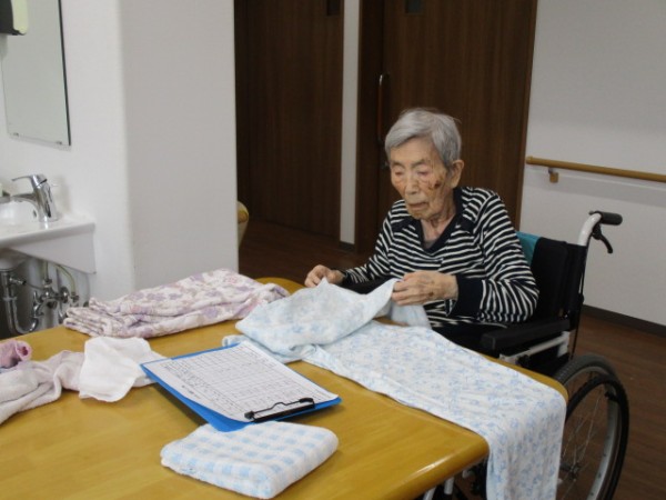 こんにちは! グループホームみんなの家・あきがせの介護ブログです! よろしくお願いいたします。 今日は2階でお手伝い(お洗濯物畳み)を行いました。そのご様子をお知らせいたします!