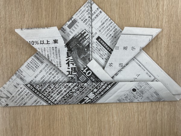 最初は兜づくりから。新聞用紙1枚を順番に追っていき、最終的に右の画像で完成となります