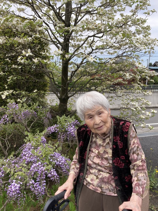 ハナミズキを後ろに記念撮影をしました(^^♪