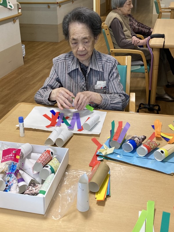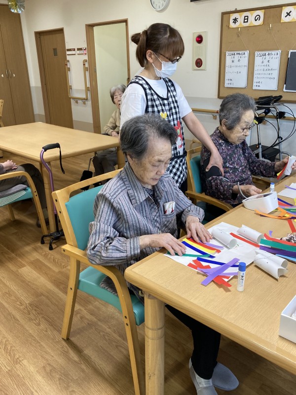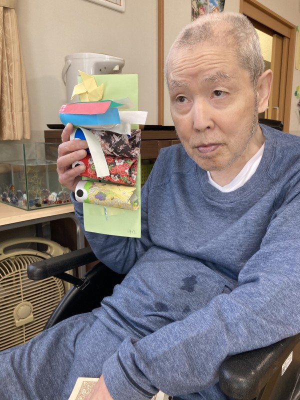 こんにちは、グループホームみんなの家·川崎新百合ヶ丘の介護ブログです。今回は2階こどもの日レクリエーションの様子です。皆さんにこいのぼりを作って頂きました。苦戦されながらも、しっかり完成です。