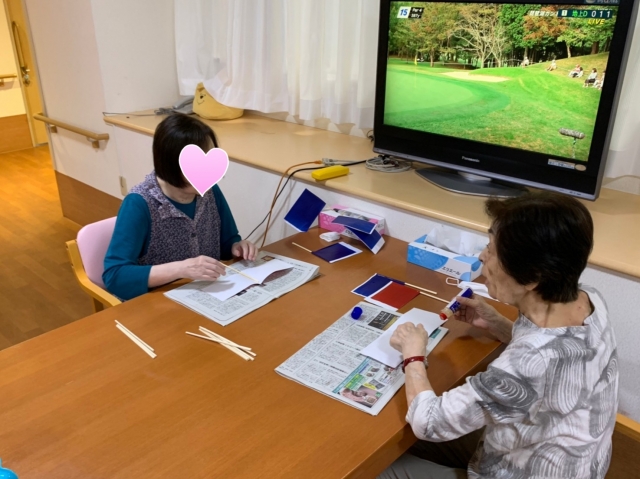 すこや家西尾久 運動会の旗を作りながらも