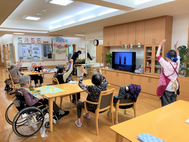 お食事前に「毎日NÕA(ノーア)」と「いきいきリズム体操」のDVD活用で転倒予防運動!