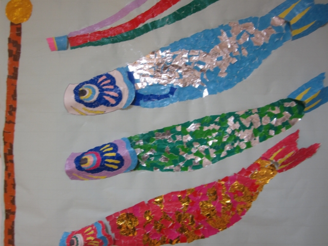 ★☆三橋6丁目の鯉のぼりの折り紙・貼り絵、飾り付けレクリエーション2022年(^^♬ 『みんなの家・三橋6丁目・介護ブログ』☆★
