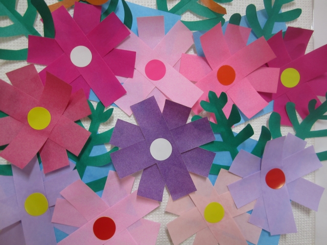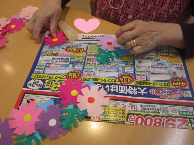 ★☆秋桜(コスモス)の折り紙、飾り付けレクリエーション♬(^^♬ 『みんなの家・三橋6丁目』☆★