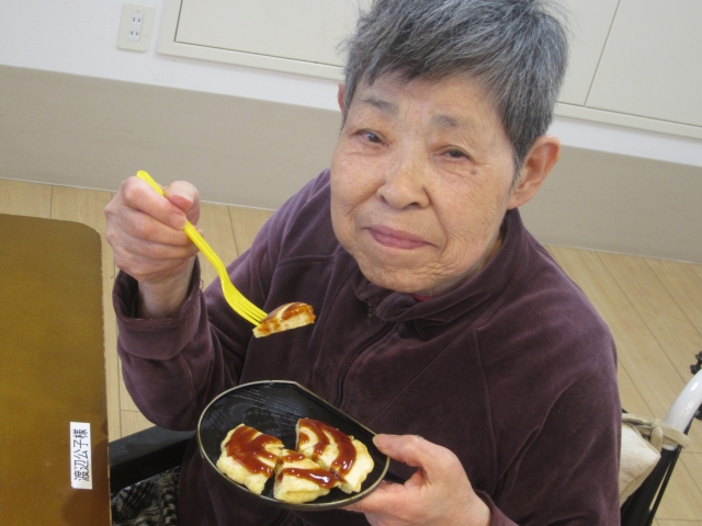 ★☆★☆手作りおやつ作りレクリエーション♫(^^♪♬ 皆様、絶賛! ホットプレートにて「お好み焼き」作成③♪♪(^^♪ 『みんなの家・三橋6丁目』☆★
