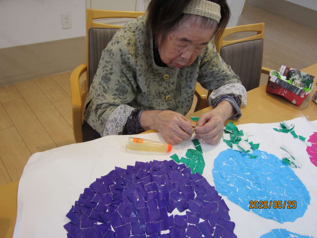 紫陽花の貼り絵、飾り付けレクリエーション\(^o^)/
