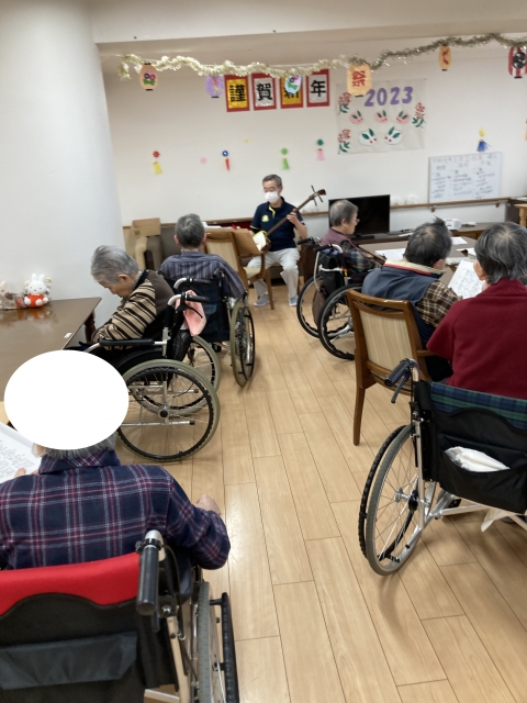 ★☆職員による三味線の新年演奏会レクリエーション①2023年(^^♬ 『みんなの家・三橋6丁目・介護ブログ』☆★