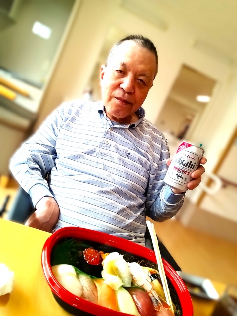 ★☆Happy Birthdayハッピーバースデー☆S・S様の誕生日会‼銀朱・高級特選握り寿司・ビール乾杯♬2025年令和7年✨ 『みんなの家 三橋6丁目 介護ブログ』☆★