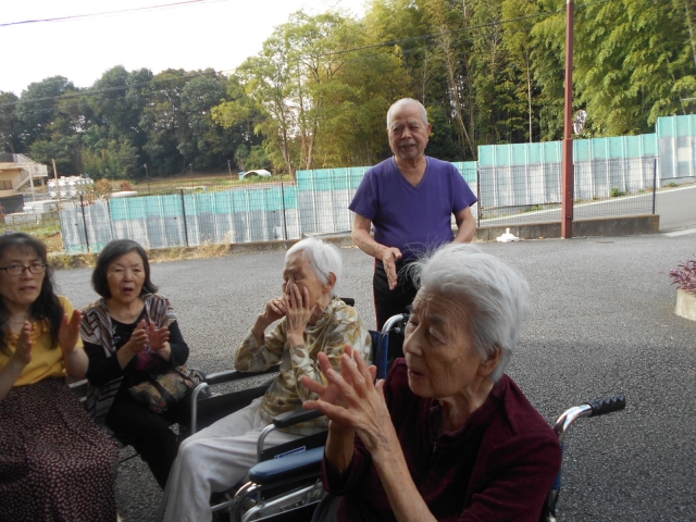 季節の移ろいを感じて、、、中庭で談笑。