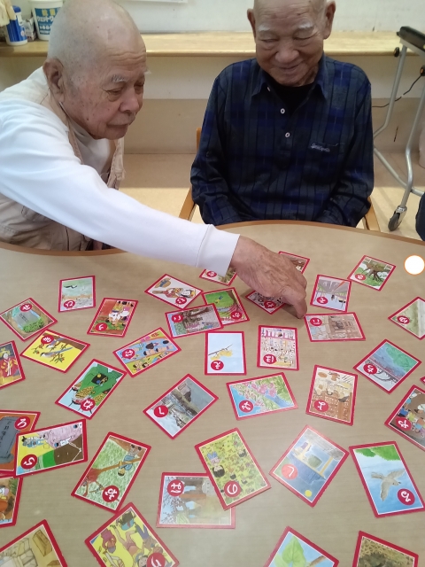 新しい入居者様とご当地カルタ!ようこそ花積みへ!