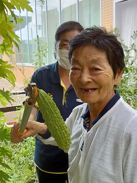 中庭のゴーヤが実りました(^^♪