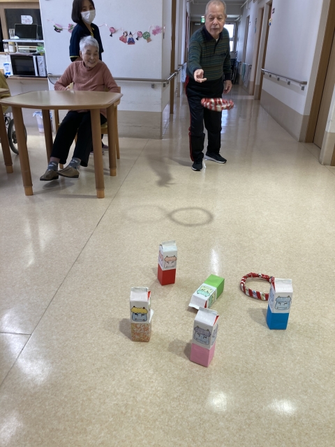 昔を懐かしんで輪投げとけん玉に挑戦!