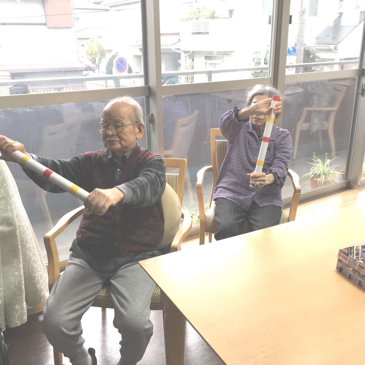 午後のひと時…きょうは“棍棒体操”です。