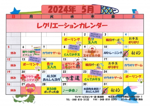 5月のレクリエーションカレンダー\(^o^)/