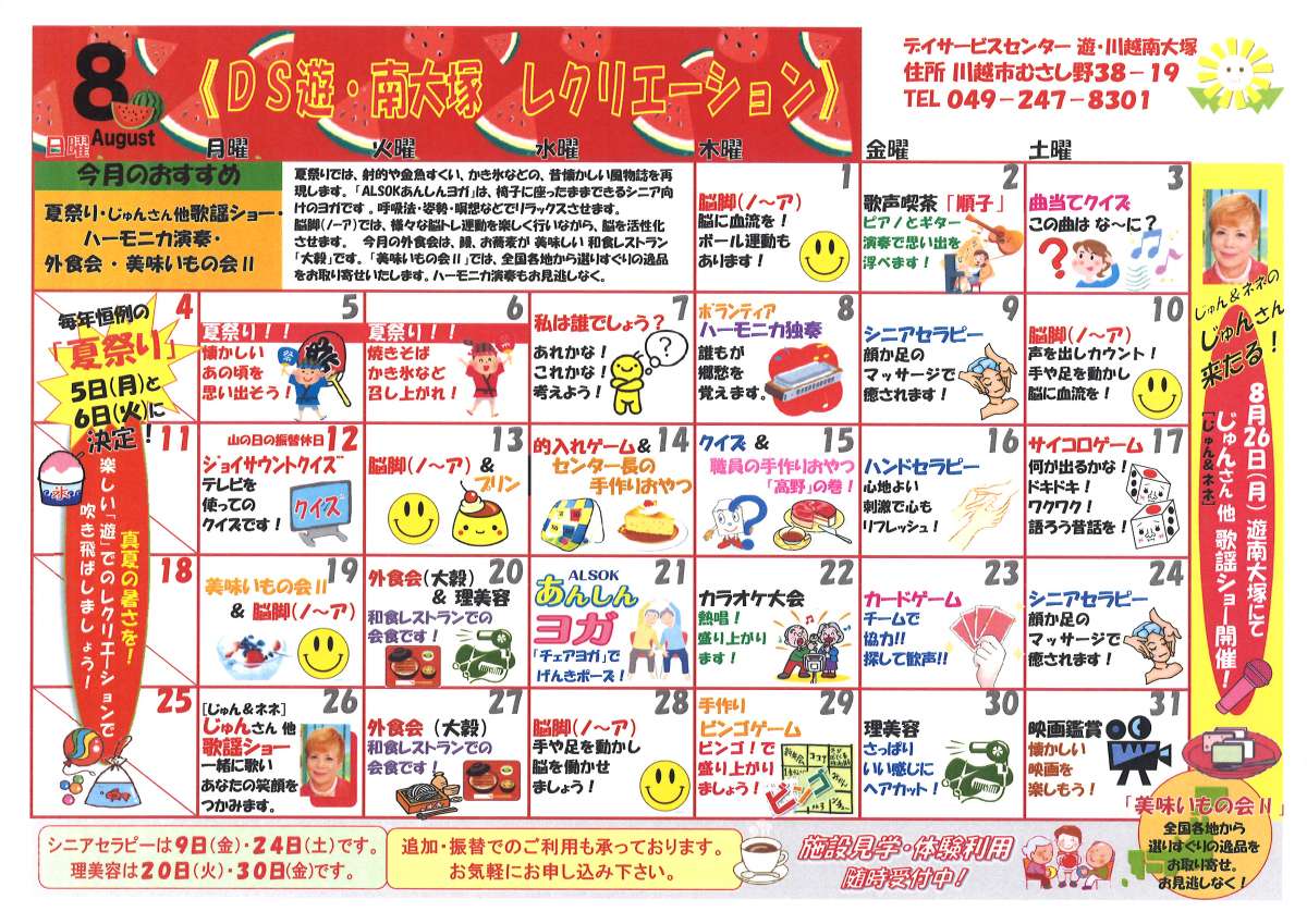 8月レクリエーションカレンダー★