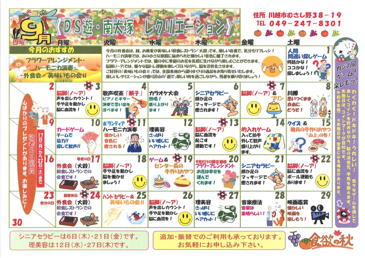 9月レクリエーションカレンダー