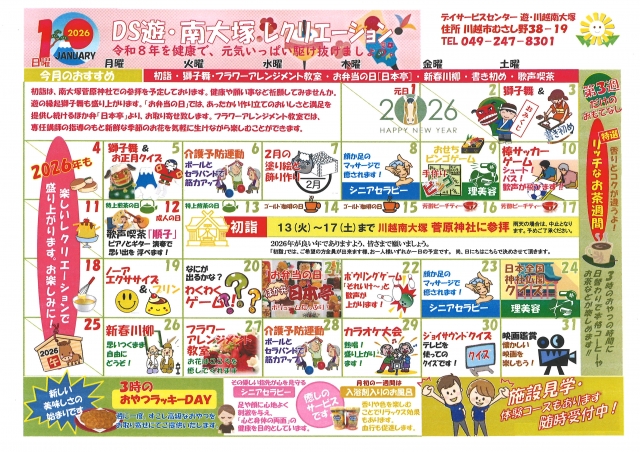 新年のご挨拶と令和8年レクリエーションカレンダーのご紹介
