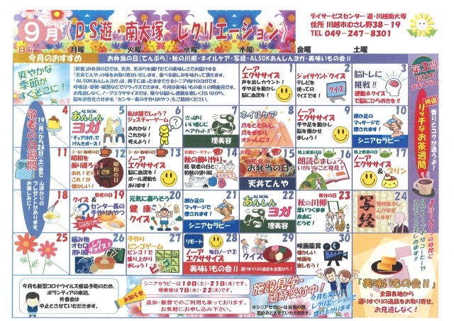 令和4年 9月レクリエーションカレンダー
