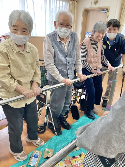 今日のレクは、食材釣り(平行棒)です。