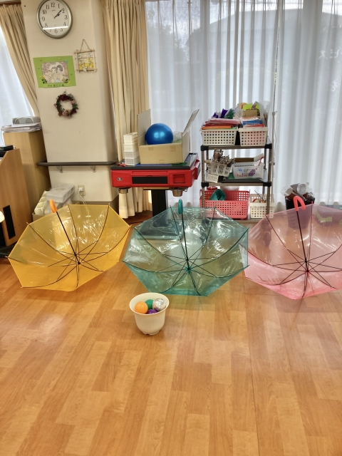今日は、カラフルパラソル玉入れ!!