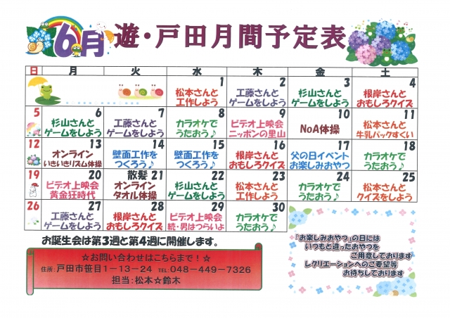 6月のレクリエーションカレンダー