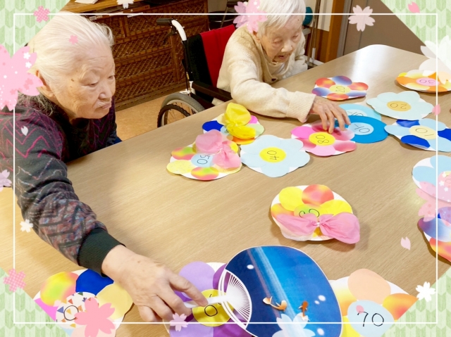 グループホームみんなの家・大宮三橋 3階【月レク】春の訪れを感じて「ちょうちょ~ちょうちょ、お花にとまれ!」ゲーム開催