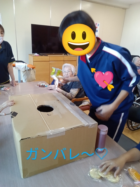 中学生と共にお菓子のつかみ取り(^^♪ワクワク♪♪